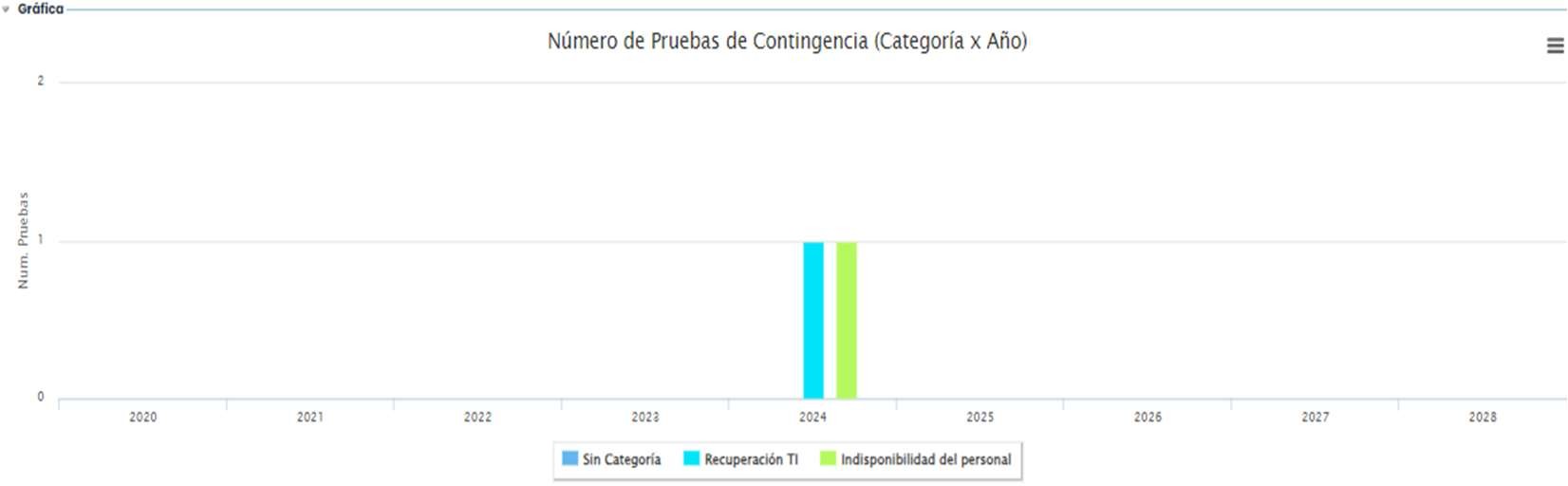 En la parte inferior de la gráfica se puede ver que, en este ejemplo ya hay algunas categorías definidas. Estas categorías se definen en Ajustes > Continuidad > Planes > Categorías de prueba de continuidad