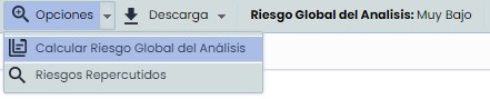 En la barra superior en las “Opciones”, nos permite “Calcular el Riesgo Global del Análisis” y ver los “Riesgos Repercutidos”, también se permite realizar una “Descarga” de la información tanto en formato Excel como pdf.