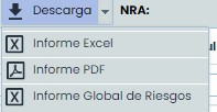 También se permite descargar el informe en dos formatos (Excel y pdf) y el informe Global de Riesgos en excel: