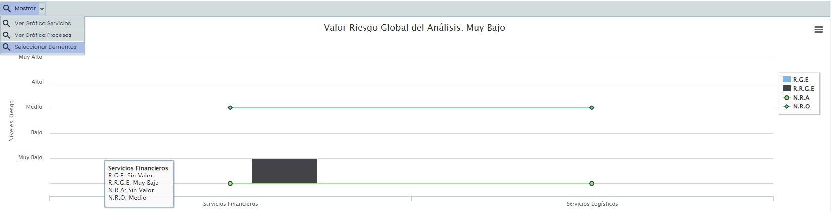 En un primer lugar en la tabla sólo se mostrarán los “Riesgos” que superen el “NRA”. Pero a través del botón “Mostrar” superior podemos mostrar lo siguiente: