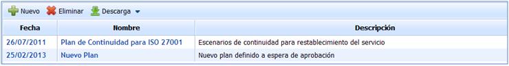Descarga: Permite obtener un listado de todos los planes de continuidad definidos.