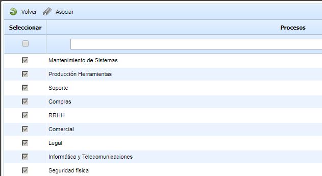 Para poder elegir los procesos, se tiene que pulsar en el botón Añadir y saldrá una ventana emergente con los procesos definidos en Inicio - Procesos.
