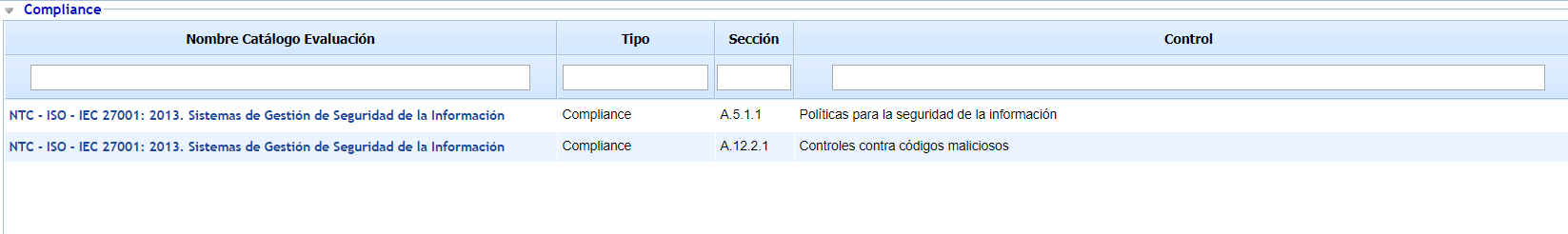Control: Permite identificar el control de la Declaración de Aplicabilidad (SOA) al que está asociado.