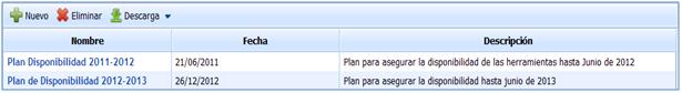 Eliminar: Permite eliminar los planes de disponibilidad definidos. Para realizar esta eliminación es necesario seleccionarlo de forma previa.