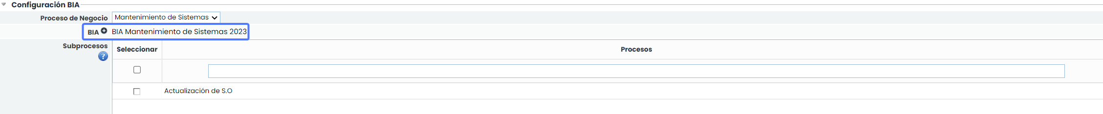 Configuración BIA.