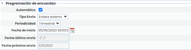 Fecha de inicio: En caso de una configuración a partir de la cual no se haya lanzado ninguna encuesta, indicará la fecha de referencia a partir de la cual se programará el lanzamiento)