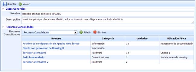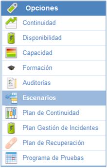 La opción Escenarios de Desastre permite establecer todas aquellas posibles situaciones de emergencia en las que sea necesario activar el Plan de Continuidad.