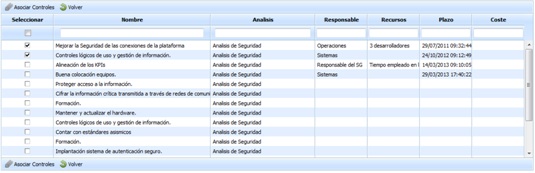 La pantalla muestra el listado de controles definidos en el apartado 'Análisis/Gestión de Controles'. Para asociar uno o varios controles se debe seleccionar el/los checkbox de los controles deseados y pulsar el botón ‘Asociar Controles’.