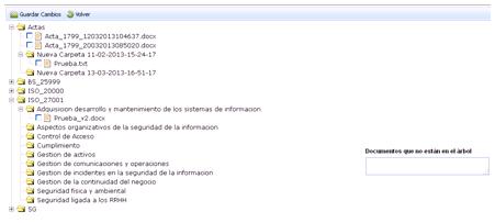En caso de querer eliminar una asociación, el usuario debe acceder al árbol documental, quitar la selección de el/los checkbox deseados y pulsar sobre el botón ‘Guardar cambios’.