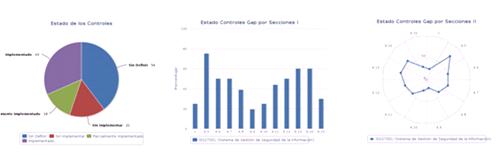 Mostrar Gráficas: Muestra diferentes gráficas que representan el estado de implantación de los requisitos del catálogo compliance.