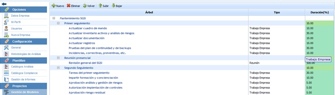 NOTA: Para que un modelo sea válido, todas sus tareas deben sumar 100%. Mientras no sumen 100%, la herramienta destacará en color rojo este punto.
