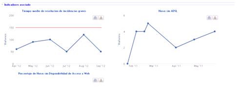 El campo indicador muestra aquellos indicadores que se han asociado para realizar una mejor evaluación del SLA. Para asociar indicadores se ha de acceder al formulario de SLA, como se desarrolla más adelante.