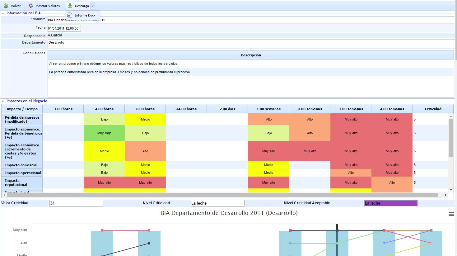Al acceder a un BIA Histórico podremos consultar toda la información del mismo, además de descargarla en formato .docx (pulsando "Descarga" y a continuación "Informe Docx").