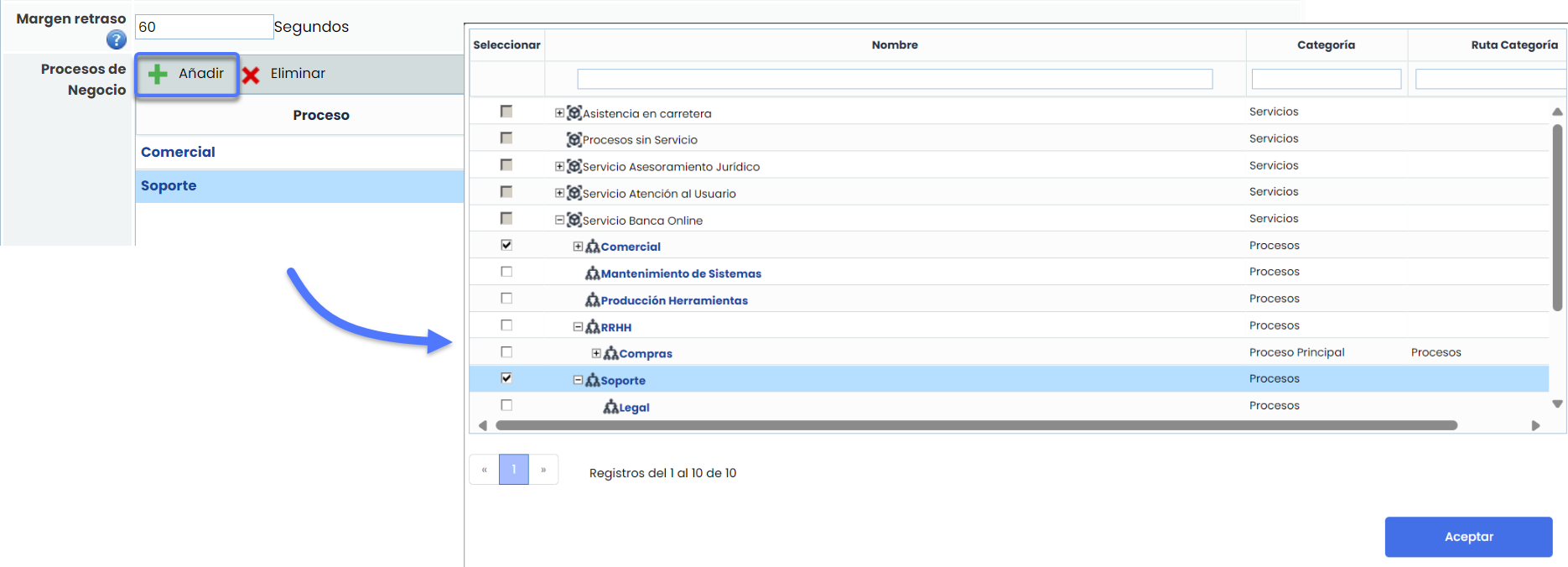 Procesos de Negocio: Permite asociar procesos dentro del ciclo de pruebas.
