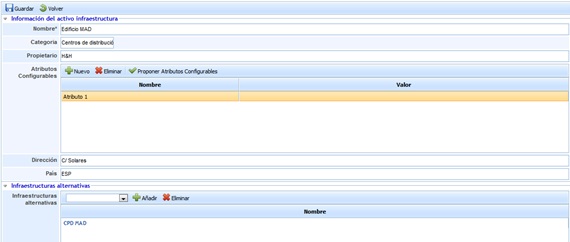 El presente apartado permite definir aquellos activos de infraestructuras que posee la organización.