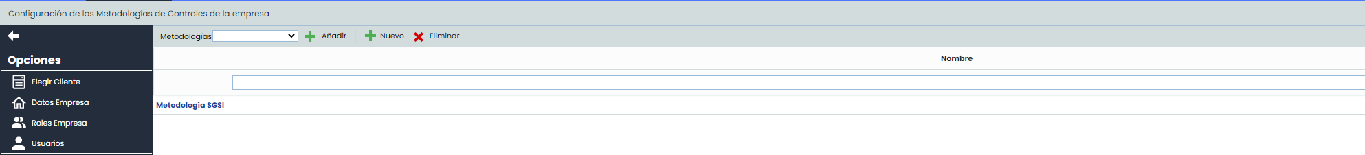 Añadir: Permite seleccionar una de las metodologías creadas. Para ello se selecciona la metodología en el desplegable y se pulsa sobre el botón 'Añadir'