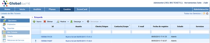 La presente opción permite al usuario visualizar los tickets que le han sido asignados, centralizados en una misma tabla.