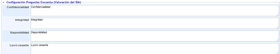 Permite incluir en la encuesta del BIA, aquellas preguntas que se han establecido en la opción de configuración "Continuidad de Negocio" ubicada en el apartado de 'Ajustes'