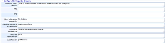 RTO: Ofrece la posibilidad de definir una pregunta para establecer el criterio del tiempo máximo de recuperación.
