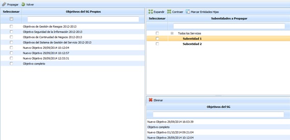 La presente opción permite la propagar los objetivos generados en la empresa matriz a las subentidades que dependen de esta.