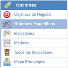 - Indicadores: Permite generar o fijar qué indicadores son los que van a permitir cumplir con el objetivo específico que soportan.
