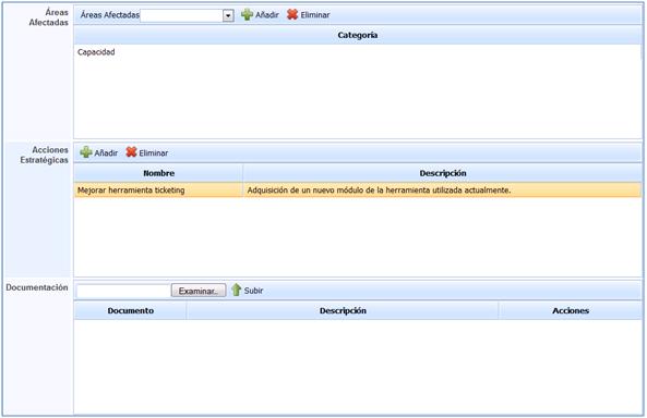Documentación: Permite asociar cualquier tipo de documentación o registro que pueda ser útil para la consecución del objetivo fijado.