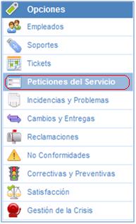 En la pantalla principal de Peticiones de Servicio nos aparecen todas aquellas peticiones que aun no están en estado cerrado, así como las siguientes opciones: