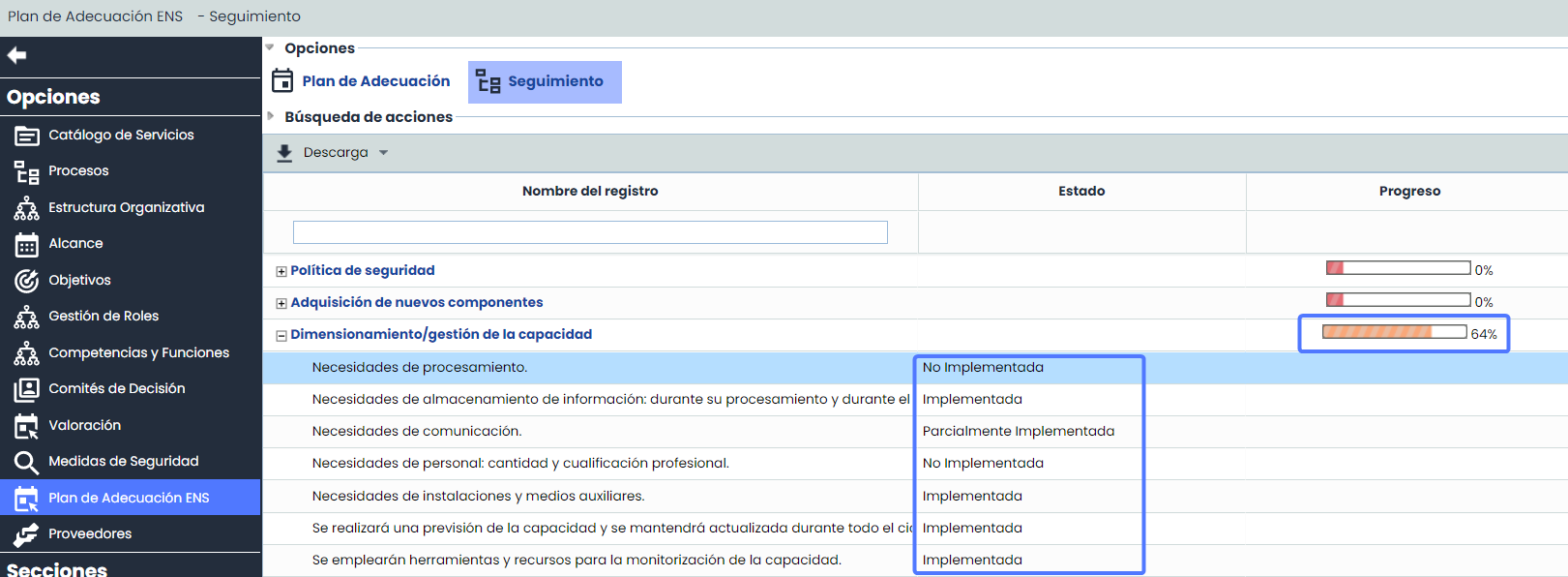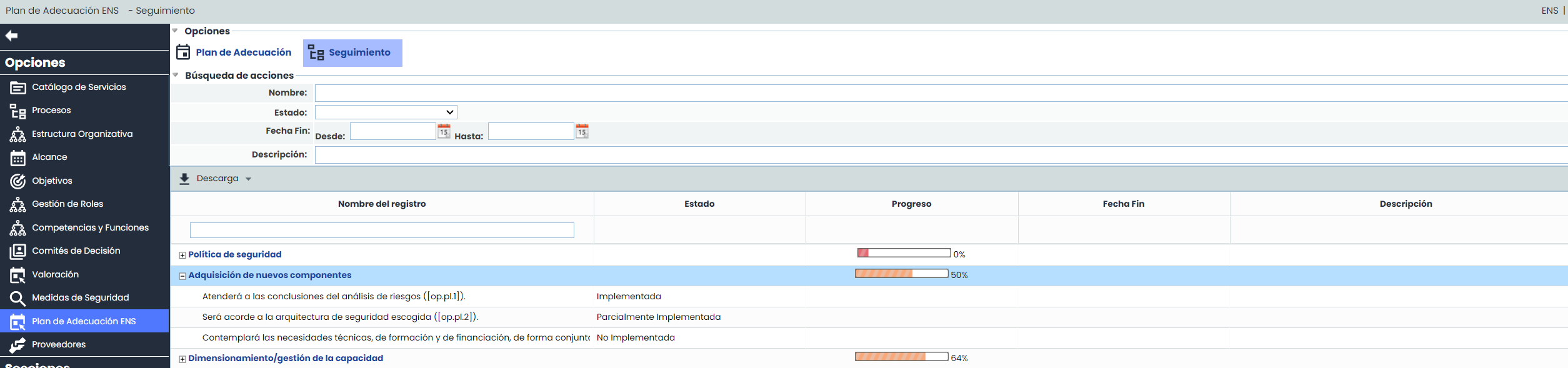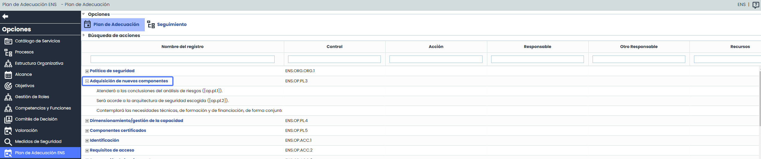 Esta vista mostrará todas las medidas de seguridad que aplican, y debajo como acciones, los controles obligatorios y los de refuerzo que no estén implementados al 100%.