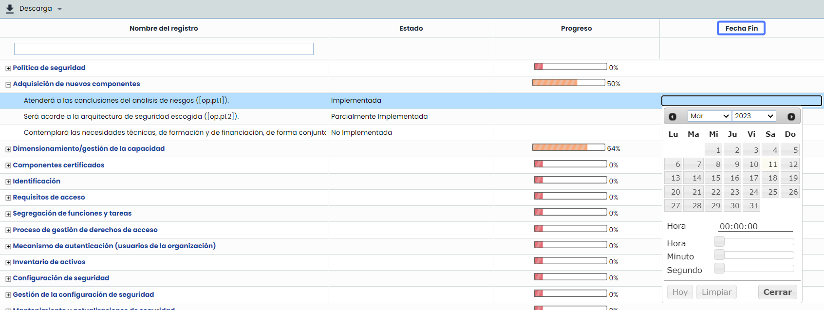 Progreso: Es un campo automático que calcula el porcentaje del progreso de cada control a través de la media de los estados de sus acciones.