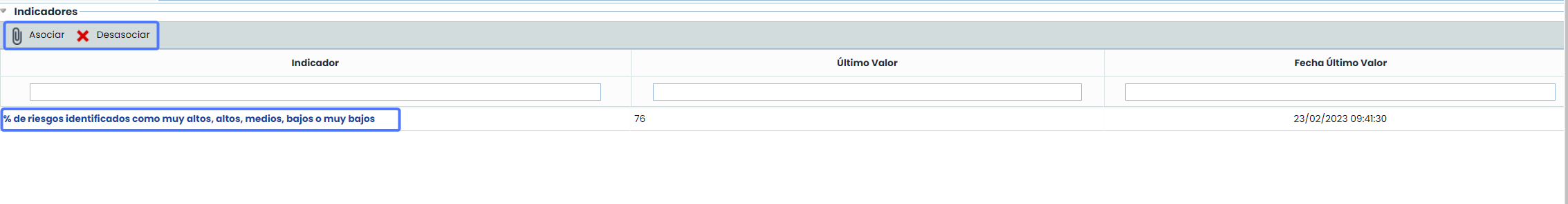 Una vez asociado, al hacer click en el nombre del indicador, direccionará al formulario del mismo para mas detalle.