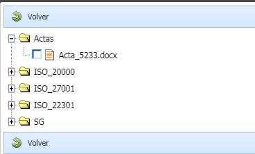 Volver: Al pulsar sobre el botón se muestra el listado de planes de continuidad definidos.