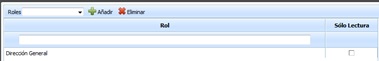 Añadir: Una vez seleccionado el rol deseado en el desplegable, permite asociar el mismo a la sección.