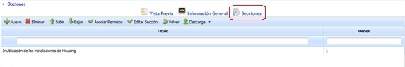 Guardar: Permite almacenar todas las modificaciones realizadas sobre la sección.
