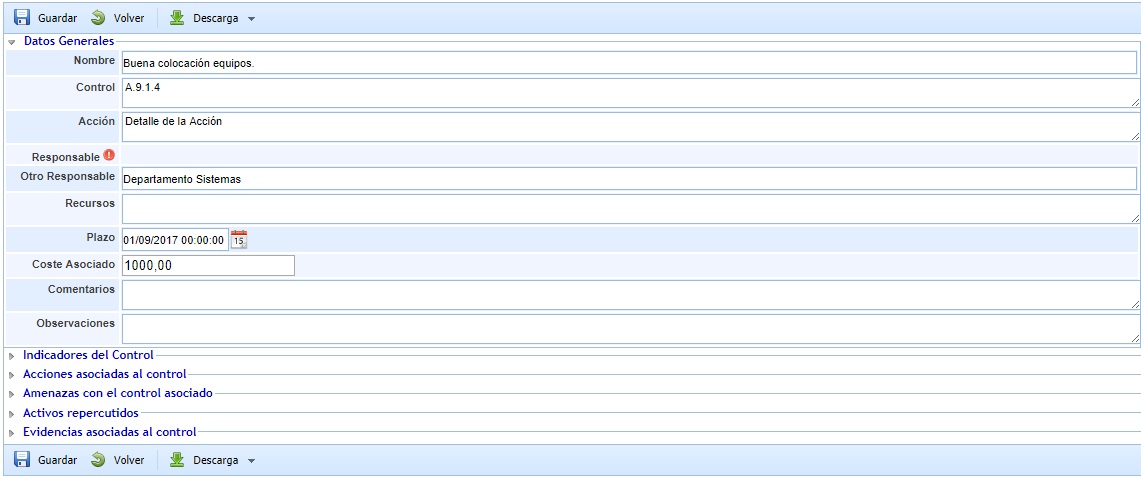 Plazo: Identifica el plazo en el cual la acción debe estar completada. Este plazo no debe ser superior al plazo de implantación definitivo del control.