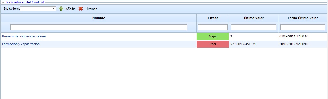 Permite asociar uno o varios indicadores definidos en el apartado ‘ScoreCard/Indicadores’.