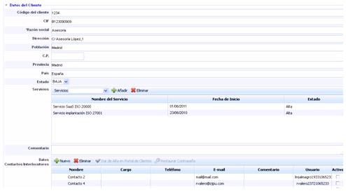 Una vez se ha accedido a la ficha, la herramienta permite definir los siguientes campos de cada uno de los clientes: