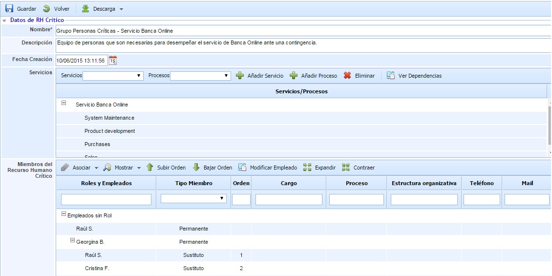 Esta opción permite definir grupos de personas que son críticos para la organización, como por ejemplo Equipos de Emergencia o Equipos de Recuperación ante Desastres.