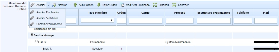Miembros del Grupo de Personas Críticas: Esta tabla permite asociar a los RRHH críticos los empleados que lo componen. En la siguiente sección se detalla su funcionamiento.