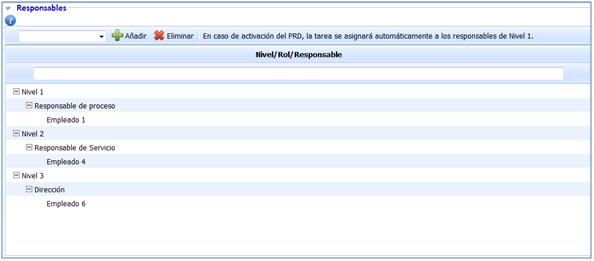 2.Para asignar un rol determinado a cada nivel, es preciso seleccionar el nivel que corresponda y en el desplegable seleccionar el rol encargado de la tarea.