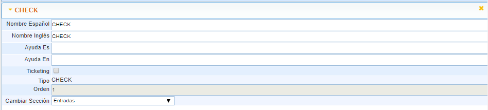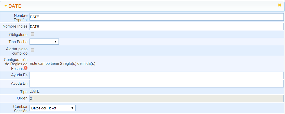 Orden: Número de ordenación asignado al campo, para su posicionamiento en el formulario.
