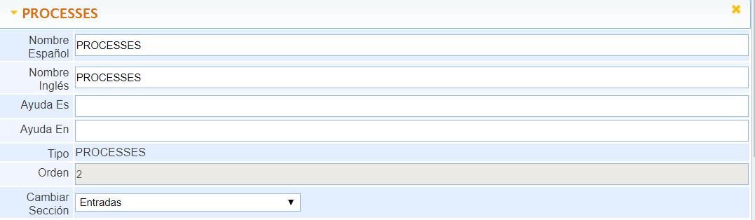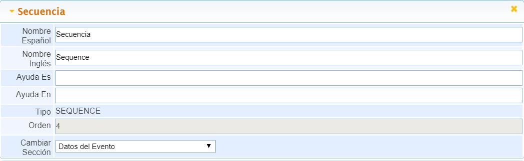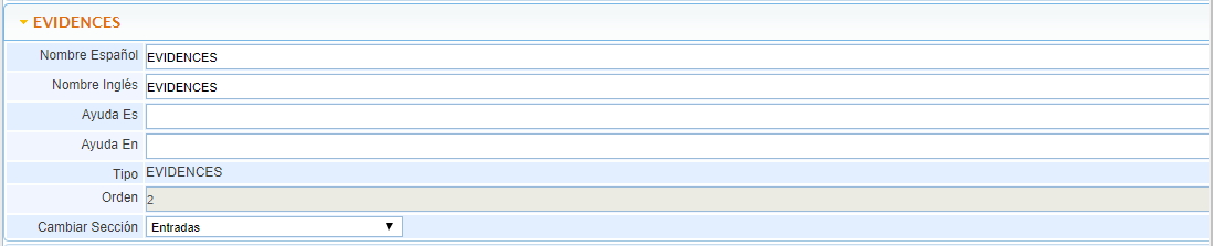 Nombre Español: Permite añadir el nombre del campo en Español.