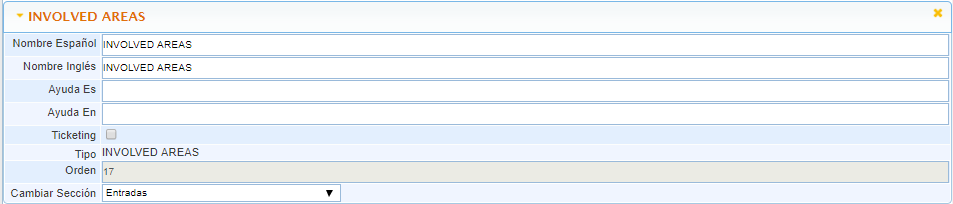 Cambiar Sección: Permite cambiar el campo a una sección diferente del Ticket.