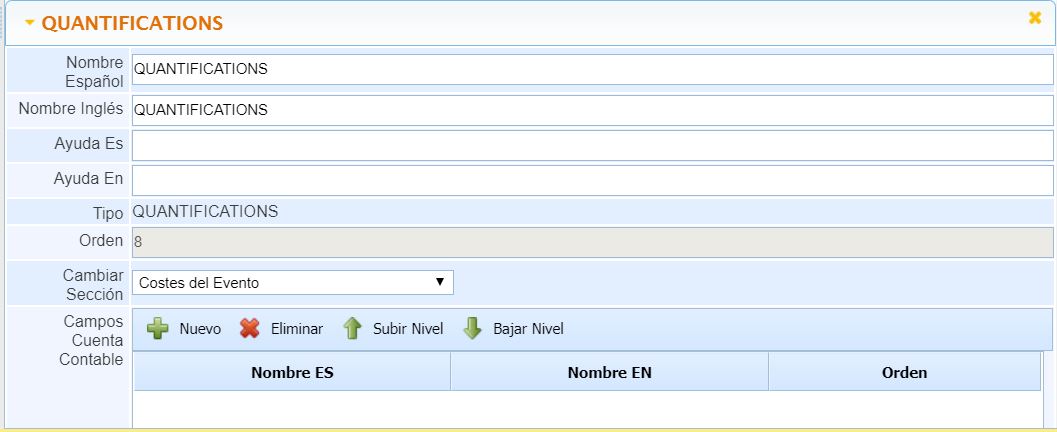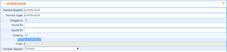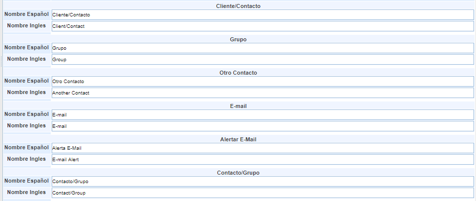 Nombre Inglés: Permite añadir el nombre del campo en Inglés.
