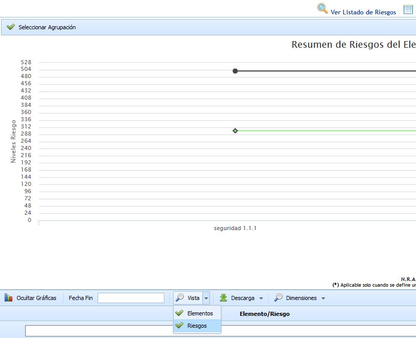 Si se selecciona la opción de riesgos, en la gráfica no aparecerán todos los riesgos, ya que únicamente se muestran los de primer nivel. Si se quieren mostrar más riesgos, se tendrán que escoger en el botón "Seleccionar agrupación" donde se puede ver todo el árbol.