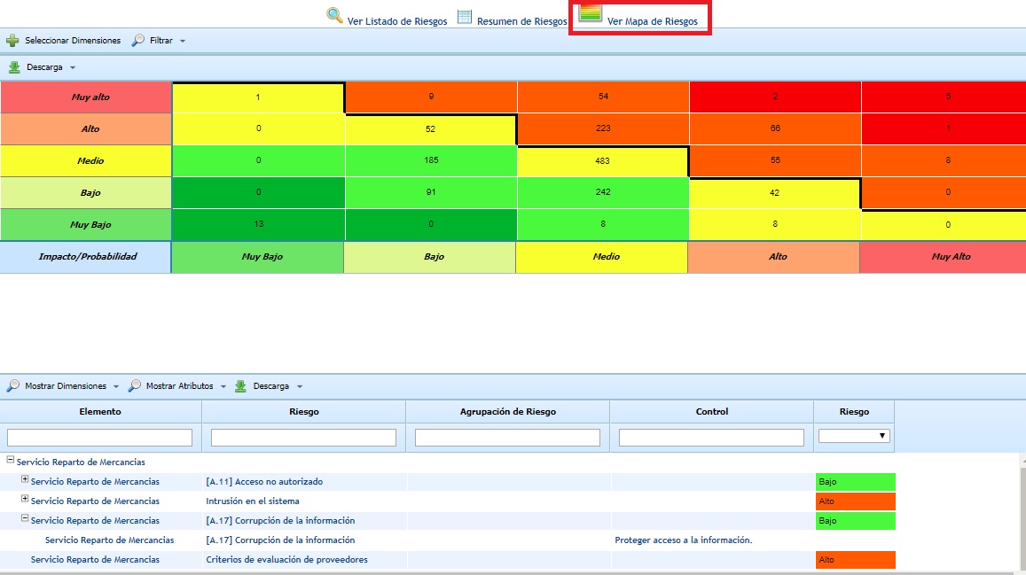 NOTA: La opción Mapa de Riesgos sólo se muestra cuando se ha configurado el nivel de riesgo en función de dos dimensiones.