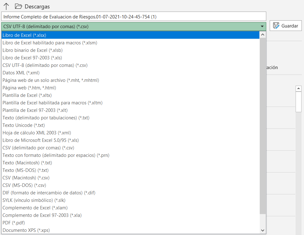 Este formato CSV es un estándar que permite la explotación y volcado de la información de riesgos en otros sistemas, facilitando la interconexión y explotación de las mismas.