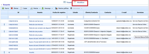 NOTA: Una vez establecido el workflow este se ha de asociar en el ticket correspondiente, para el cual se aplicará el flujo asociado, tal y como se muestra en la siguiente imagen.